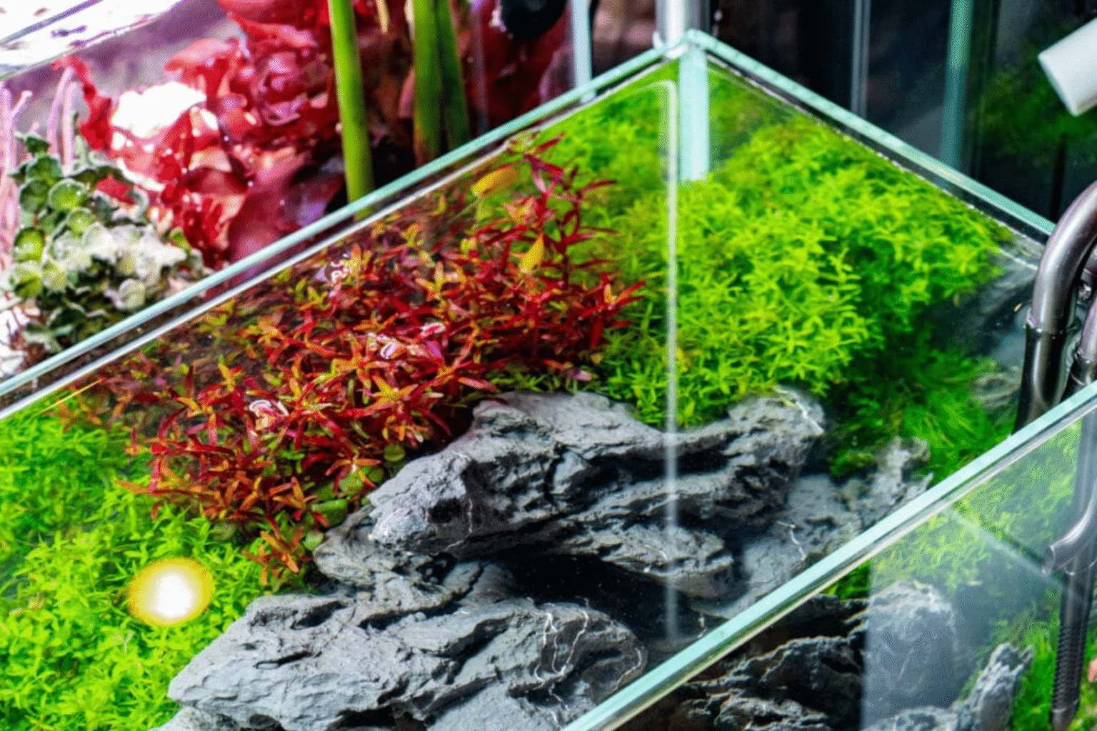 Genom att kombinera flera arter skapar du både variation och naturlig rörelse vid ytan. Dessutom bidrar det till en mjukare övergång mellan ljus och skugga, vilket ger ett harmoniskt och levande intryck. På så sätt får du en akvariemiljö som både ser naturlig ut och fungerar optimalt.