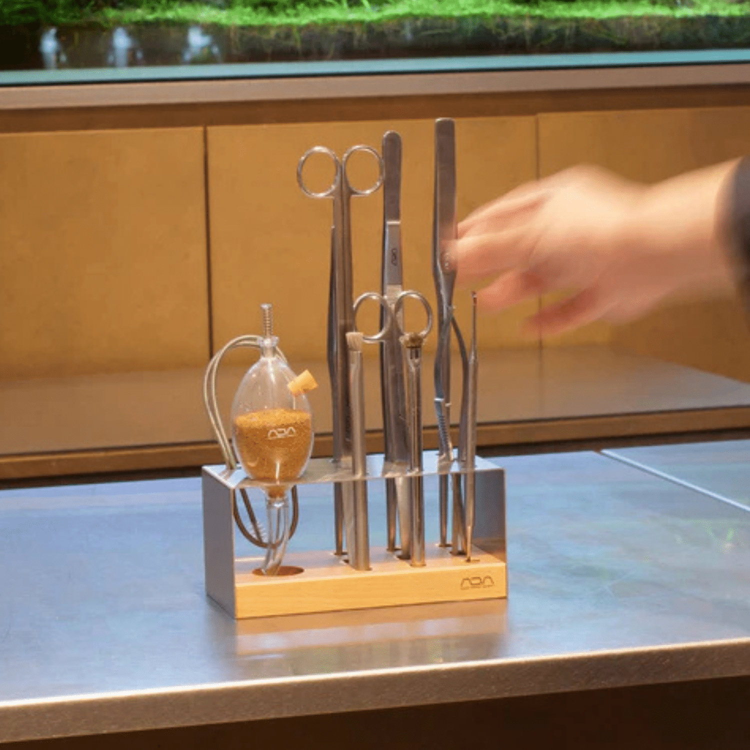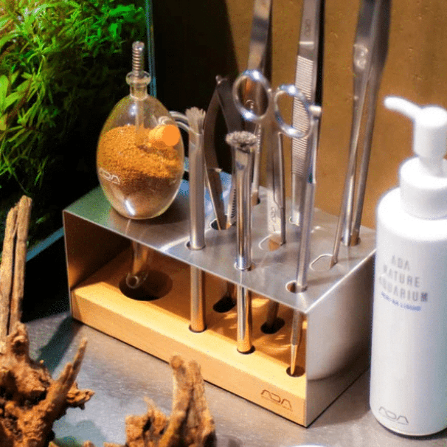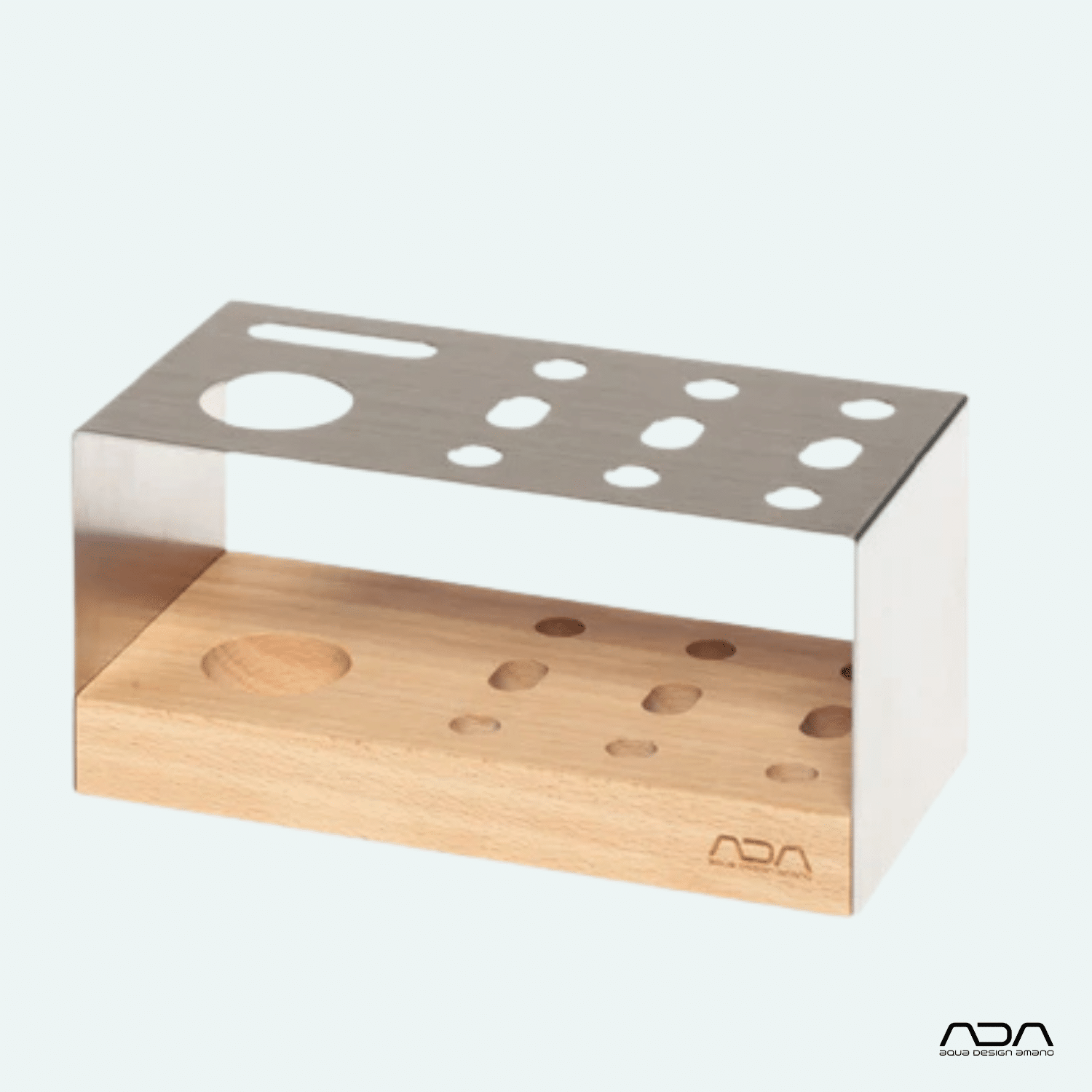 ADA Metal Wood Tool Stand är en genomtänkt förvaringslösning för aquascapingverktyg, där funktion möter design. Tillverkad i en kombination av naturligt trä och rostfritt stål skapar den en organiserad, skyddad och visuellt tilltalande arbetsyta.