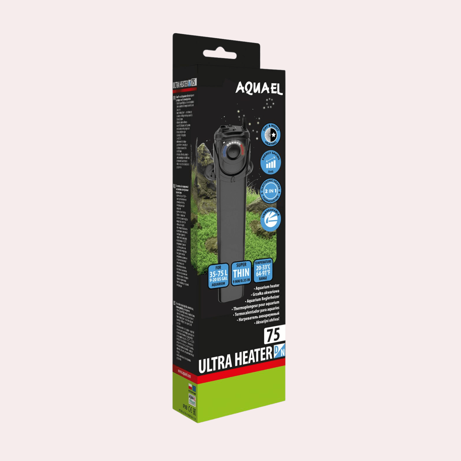 Tekniska specifikationer – Aquael Ultra Heater Day & Night 75W