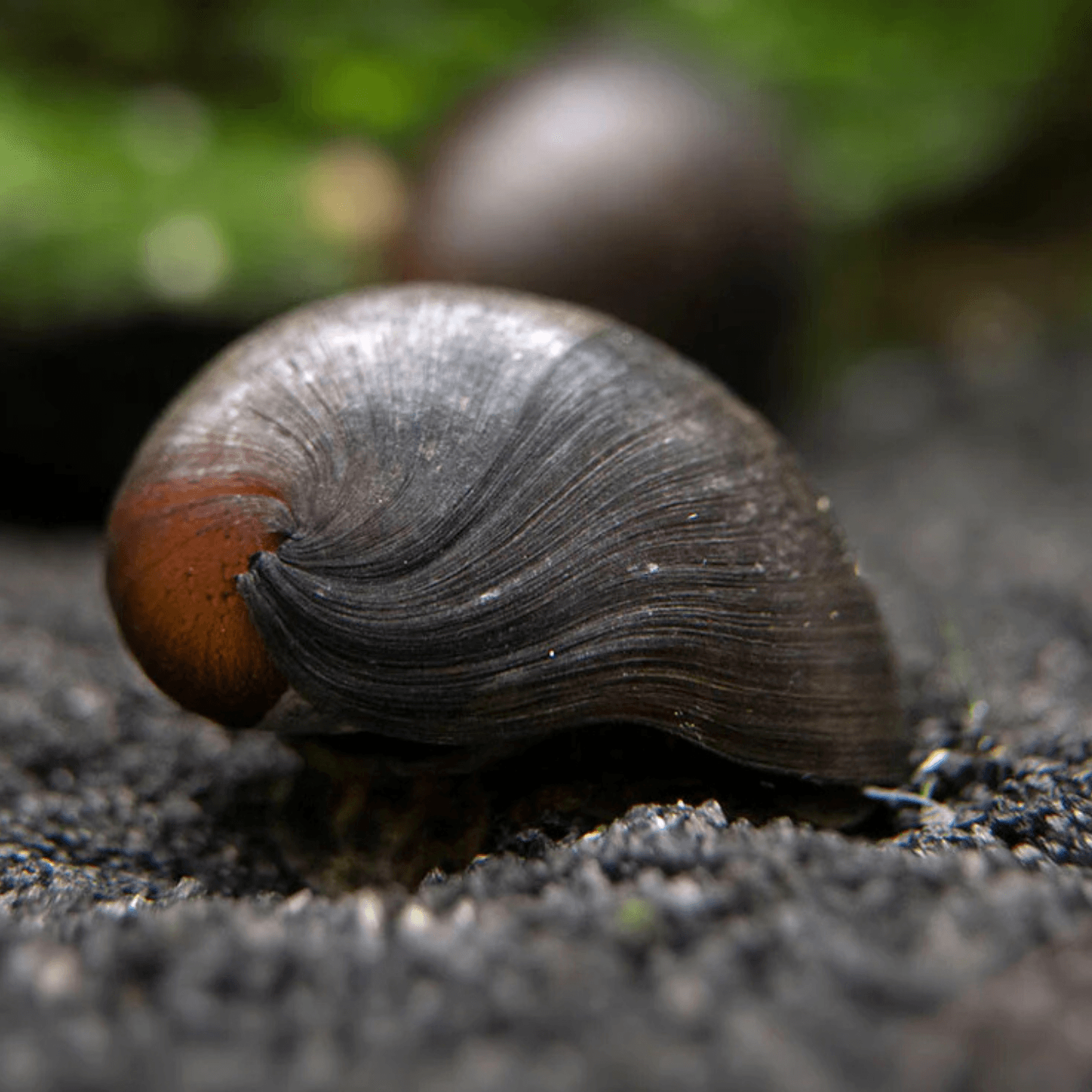 Black Racer Neritina Snäcka kombinerar elegans med funktionalitet. Dess mörka, nästan metalliska skal ger ett exklusivt intryck samtidigt som den arbetar effektivt med att hålla ytor rena från alger och biofilm. En lugn, pålitlig och stilren art som förhöjer både balansen och utseendet i ditt akvarium.
