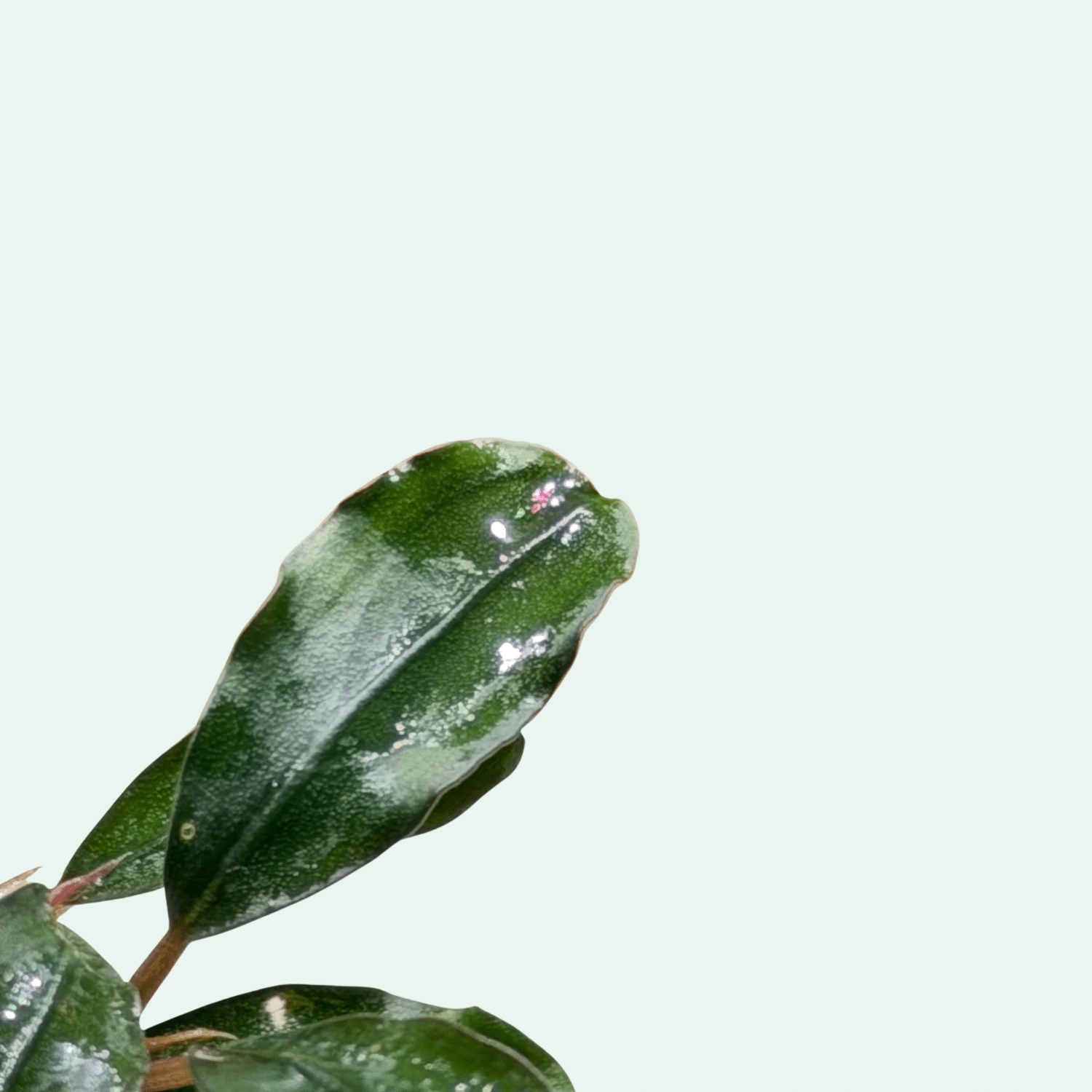 Observera: Bucephalandra ‘Majestic’ levereras i begränsade partier. Variation i bladform och färgton kan förekomma – varje exemplar är unikt.