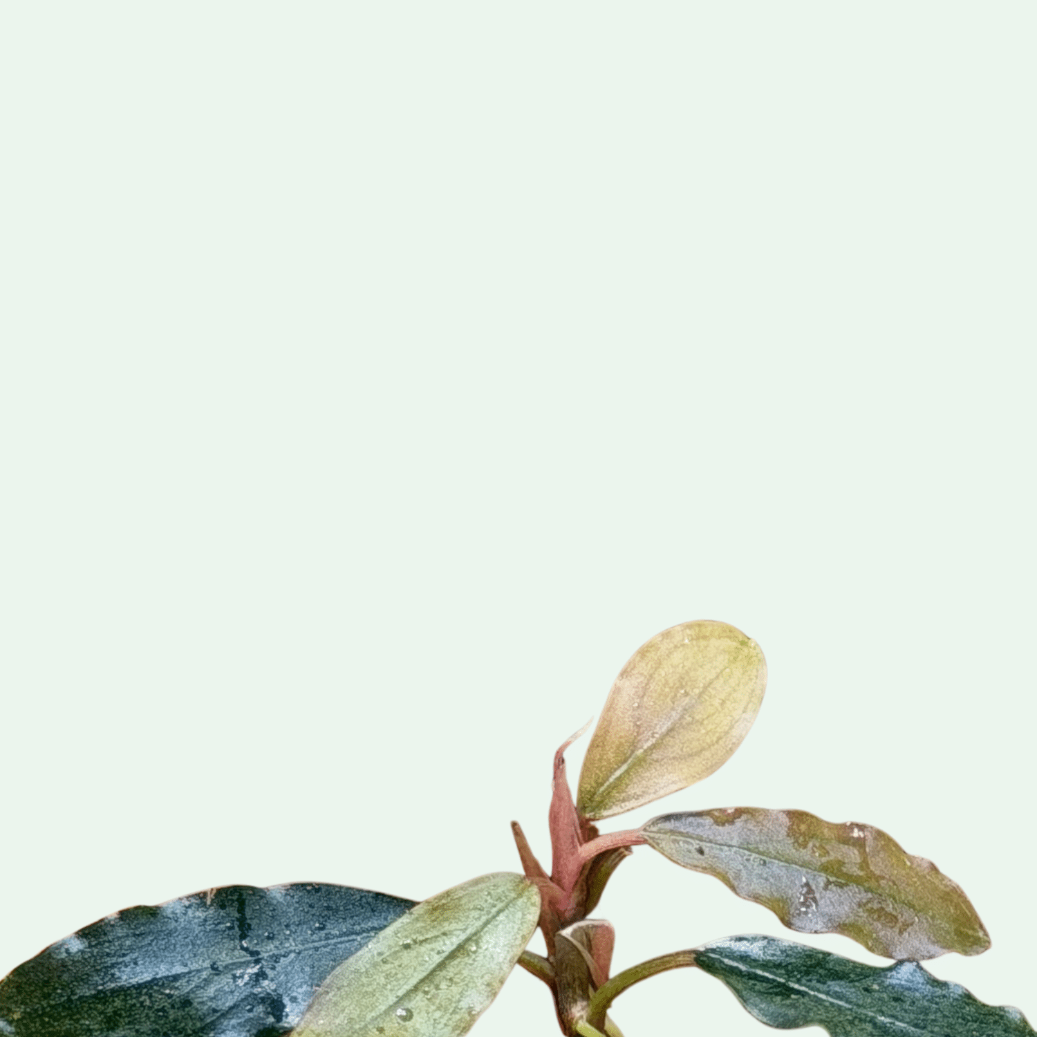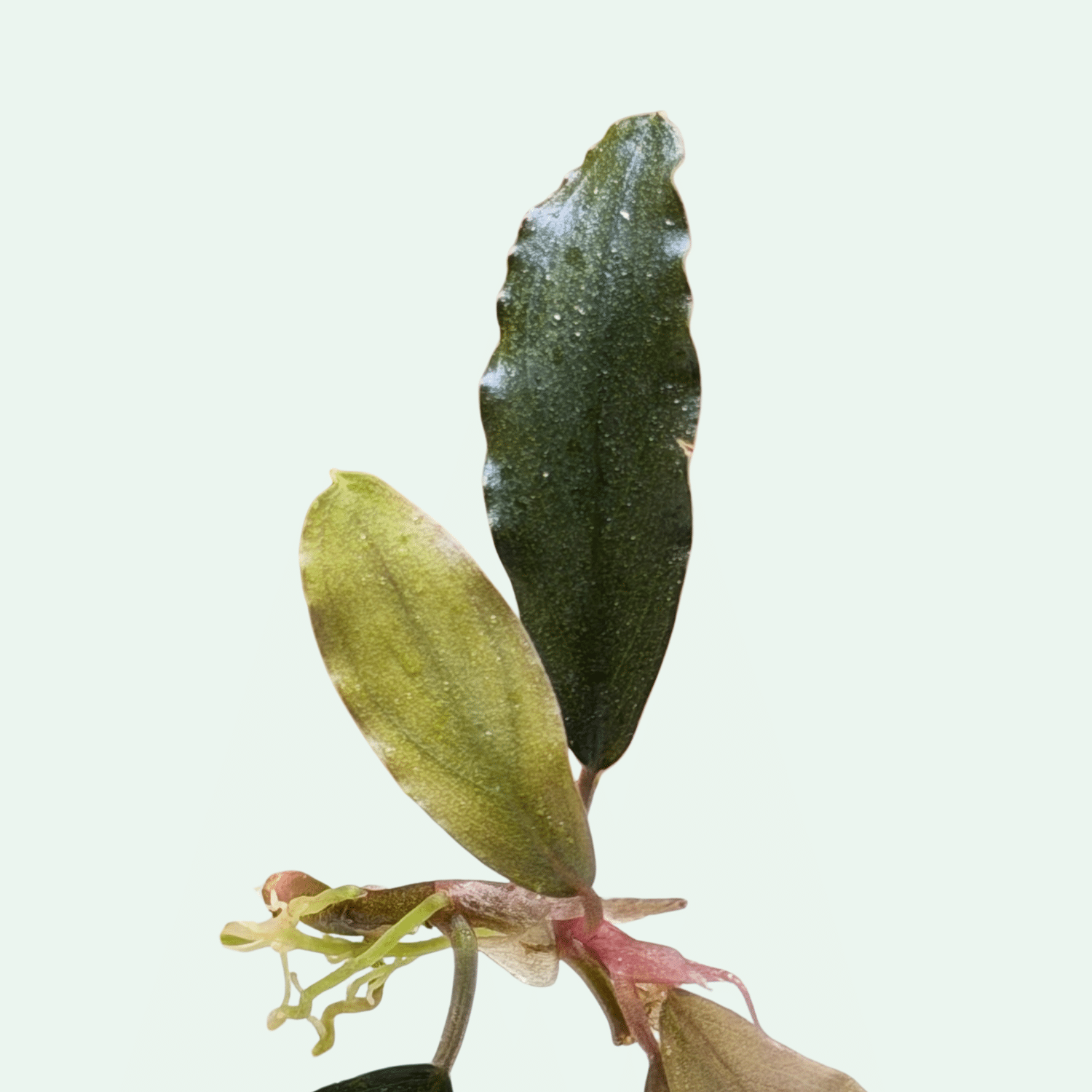 Observera: Bucephalandra ‘Nanga Pinho Red’ levereras i begränsade partier. Variation i bladform och färgton kan förekomma – varje exemplar är unikt.