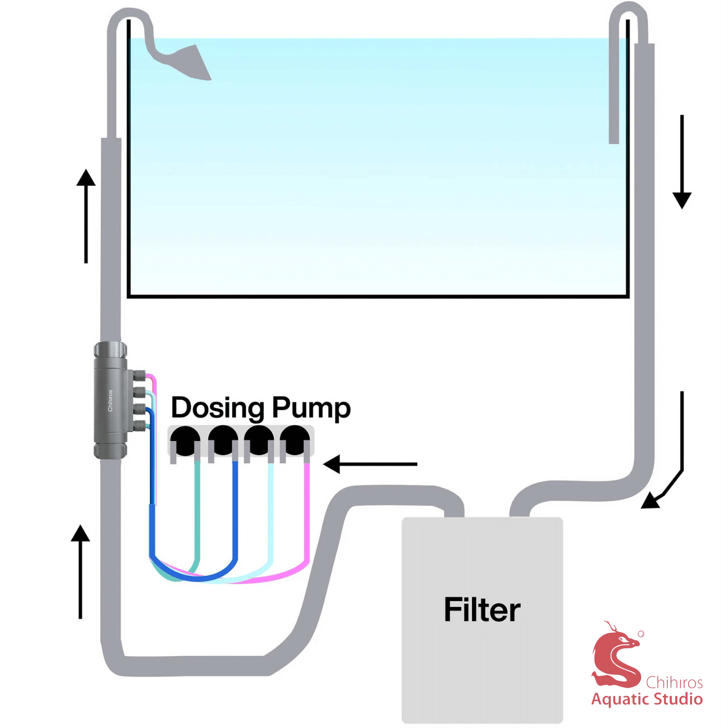 Chihiros Inline doseringsadapter gör det möjligt att integrera ditt doseringssystem direkt i filterslangen – för en renare installation och mer exakt näringstillförsel. Med fyra doseringsportar och inbyggda backventiler säkerställs en säker och kontrollerad dosering utan läckage. Den robusta aluminiumkonstruktionen ger lång livslängd och en premiumkänsla, samtidigt som adaptern finns i flera storlekar för att passa olika filtersystem.