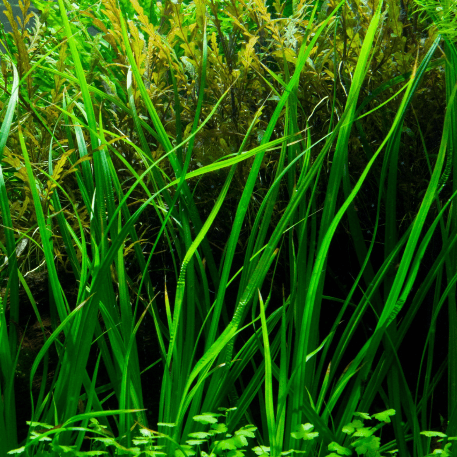 Den växer långsamt i början men blir med tiden en imponerande solitärväxt eller bakgrundsgrupp som ger layouten ett naturligt, strömmande utseende. Under stark belysning och god CO₂-tillgång får bladen en lätt ljusgrön ton.