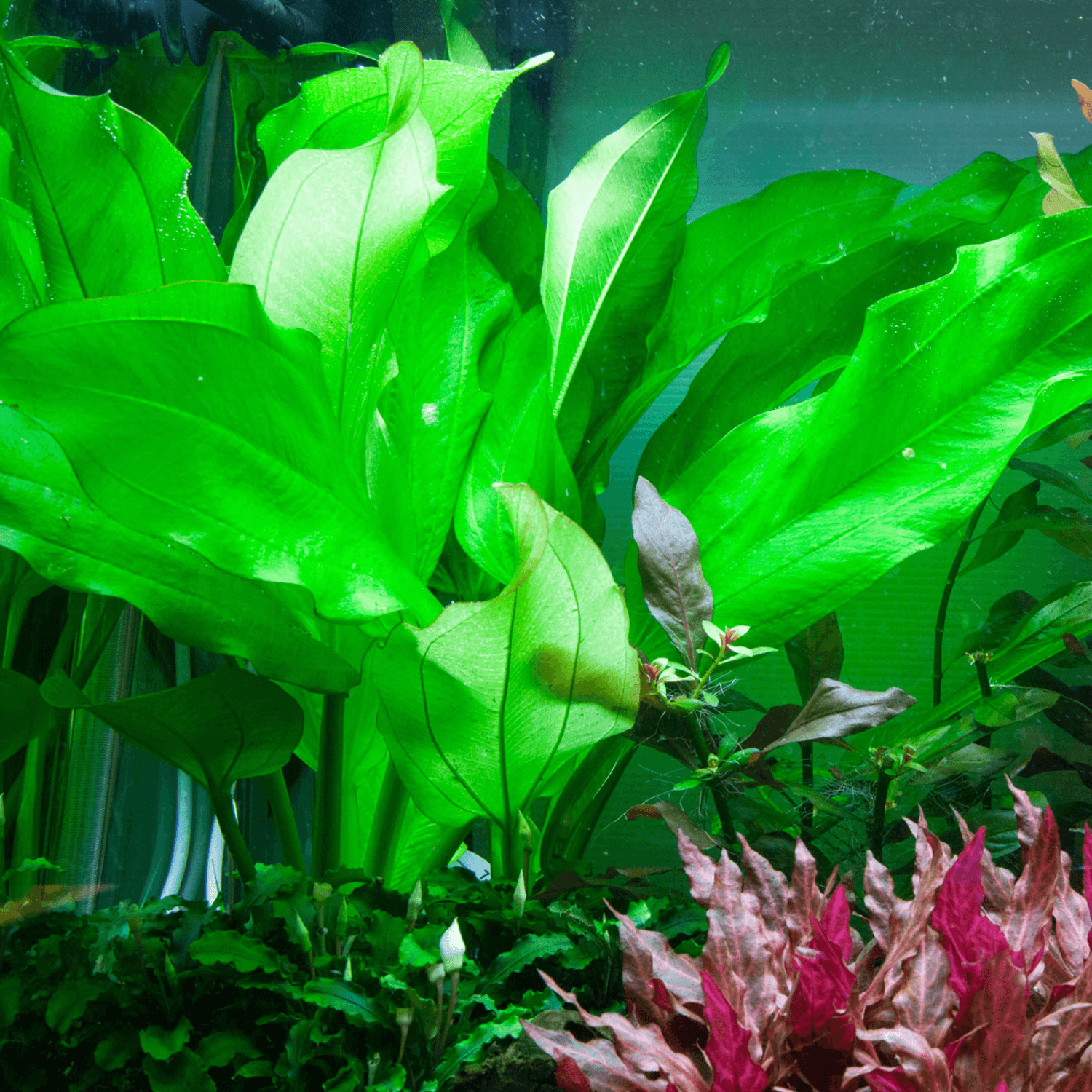 Om du vill ha en stor och tålig svärdsplanta som skapar en naturlig känsla och gärna bryter vattenytan är Echinodorus cordifolius ‘Fluitans’ ett utmärkt val. Den kräver lite underhåll, växer stabilt och passar perfekt i öppna akvarier och växtmiljöer med mycket ljus.