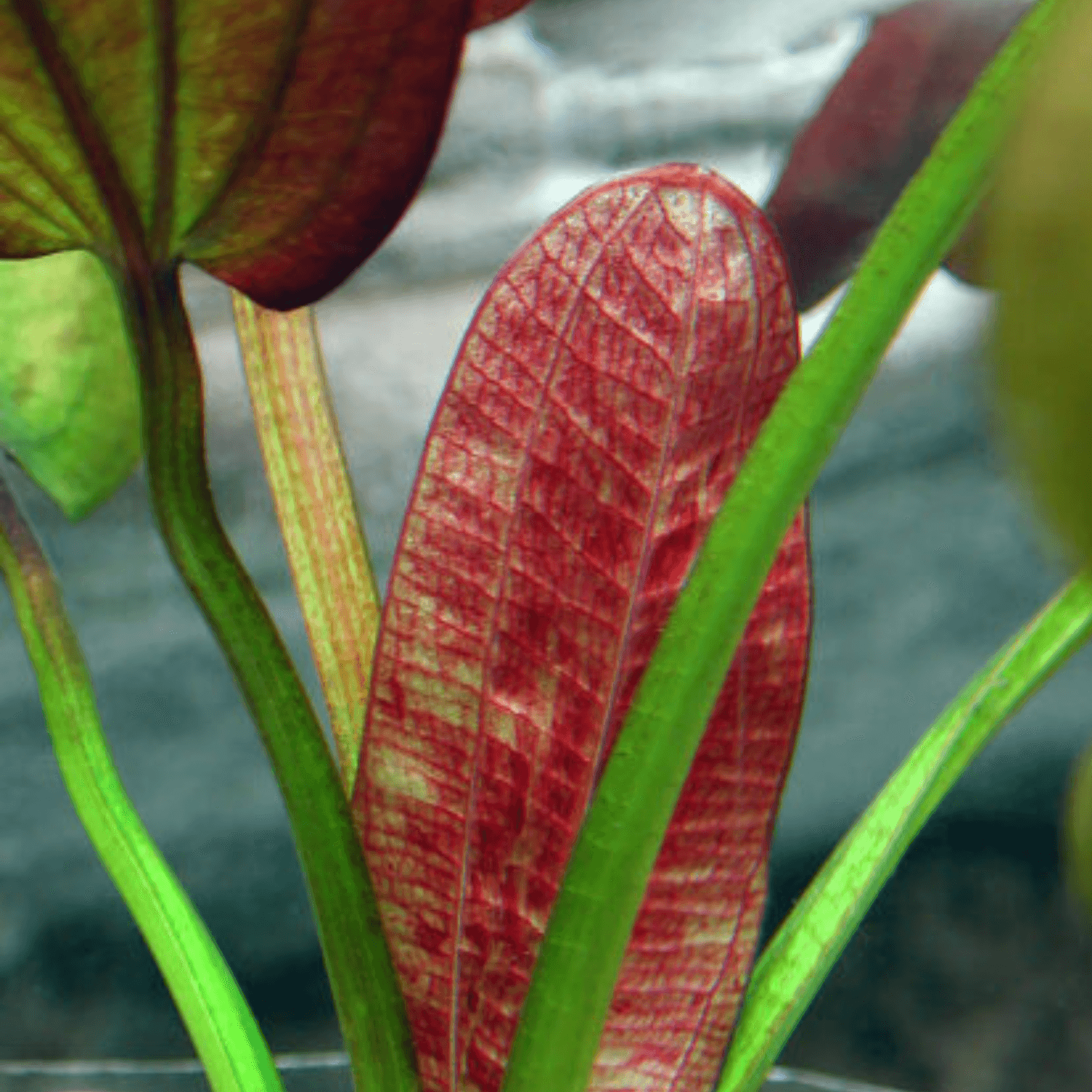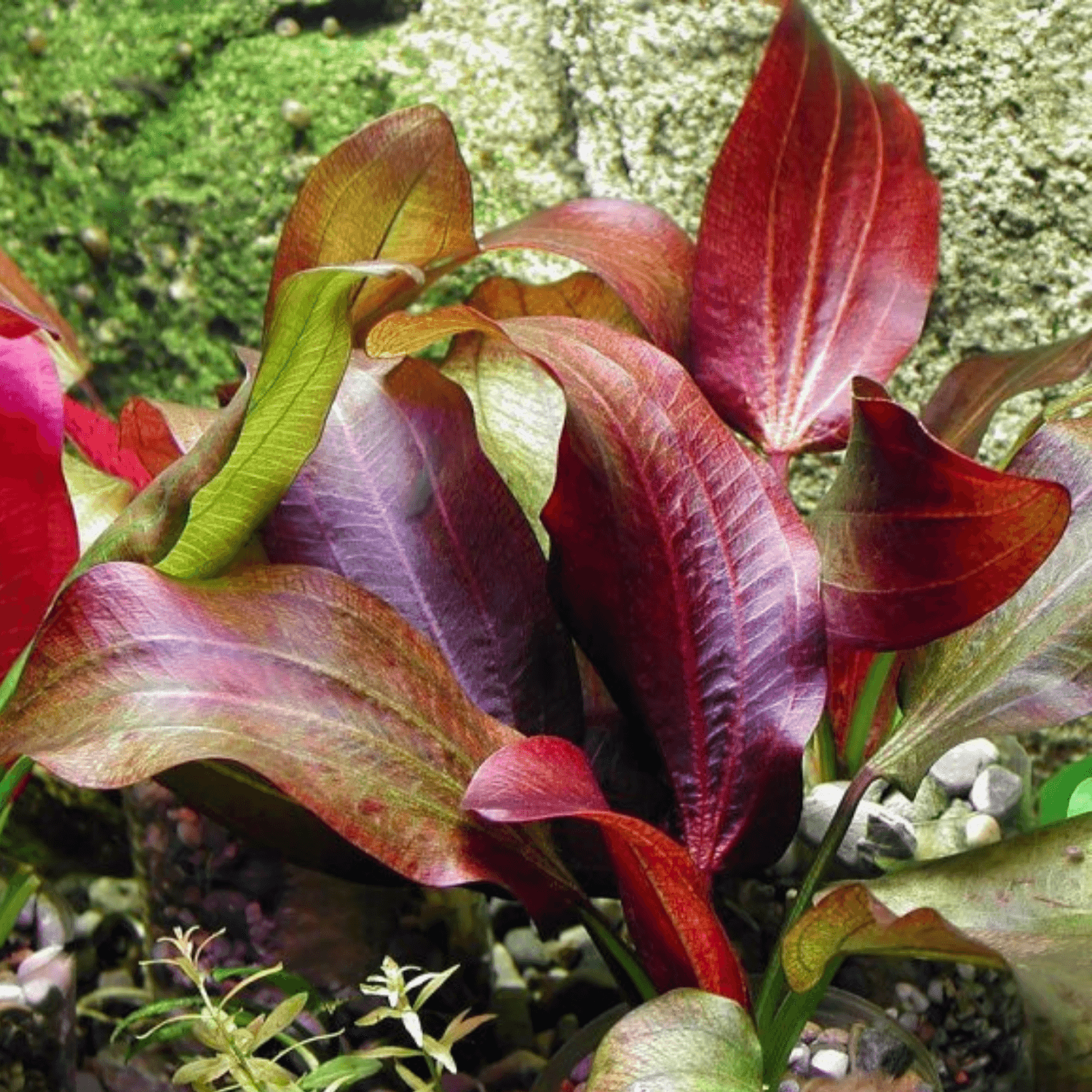 Observera: Echinodorus ‘Ipica’ kan variera i färg beroende på ljus och näringsnivå. Under stark belysning och med god tillgång till järn utvecklas en djupare rödbrun ton.