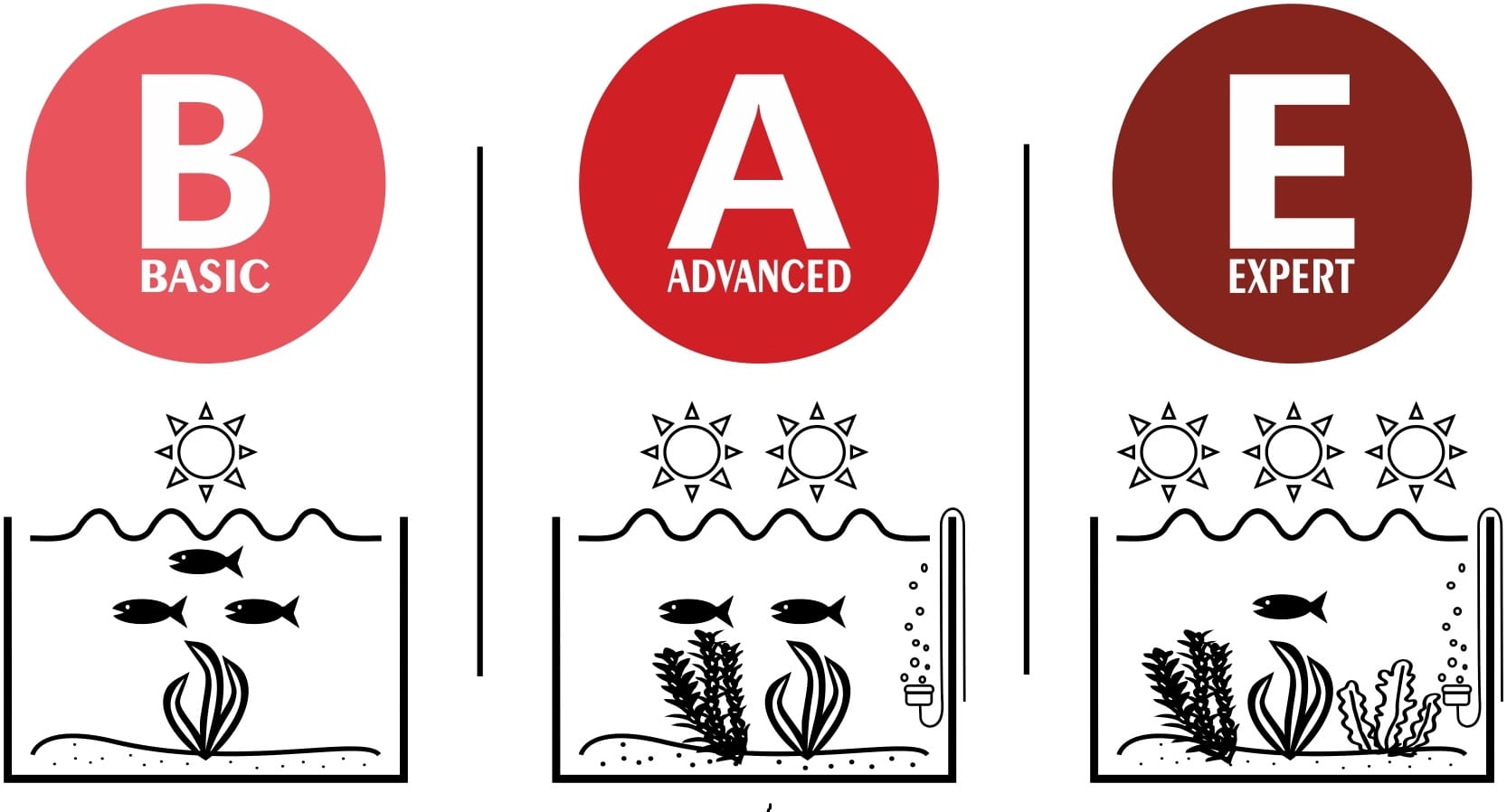 Rekommenderad dosering: (Nivåerna avser mängden växter samt teknisk nivå på akvariet)
