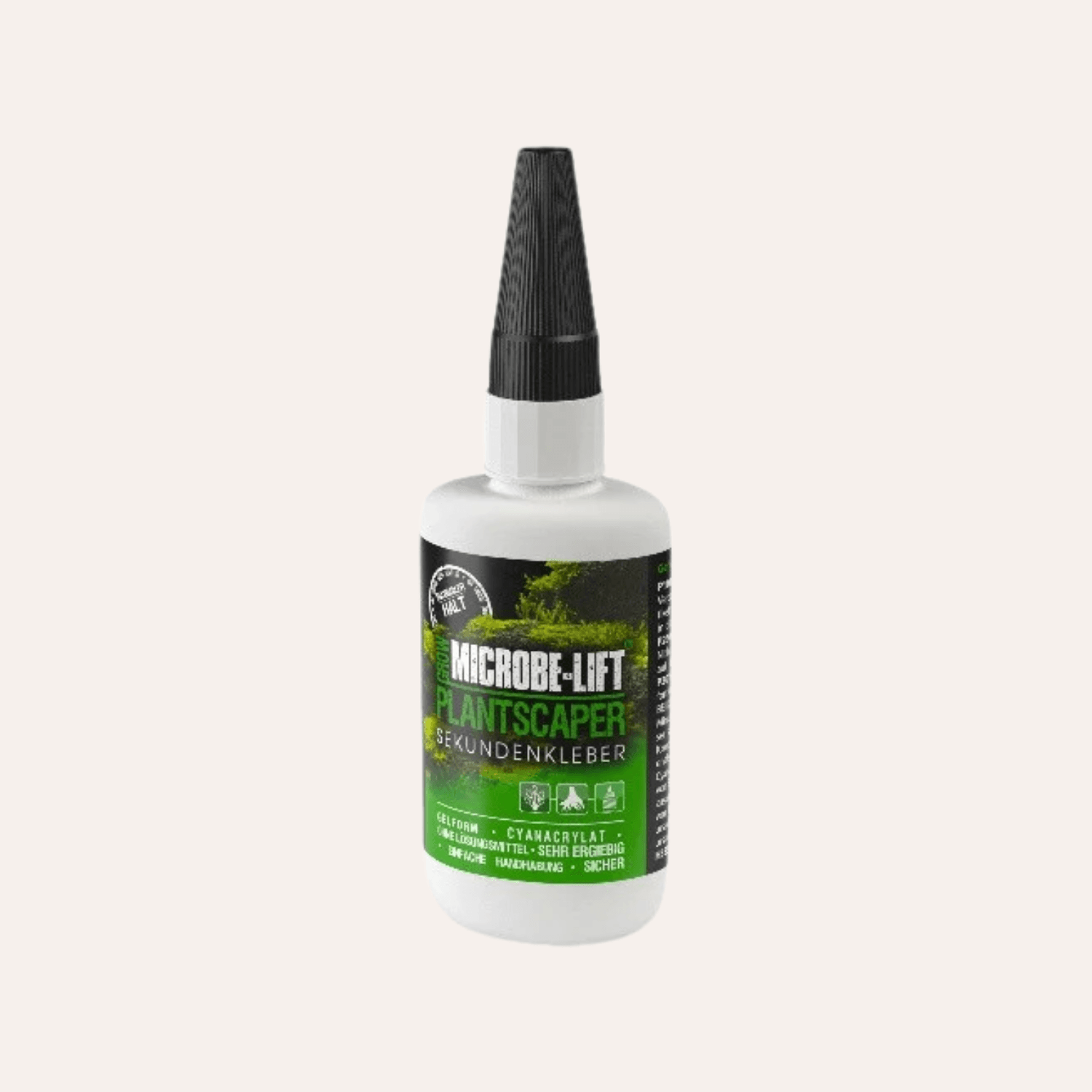 cyanoakrylatinnehåll härdar limmet på bara några sekunder – även under vatten – vilket gör det till ett oumbärligt verktyg för alla aquascapers.Limmet är helt