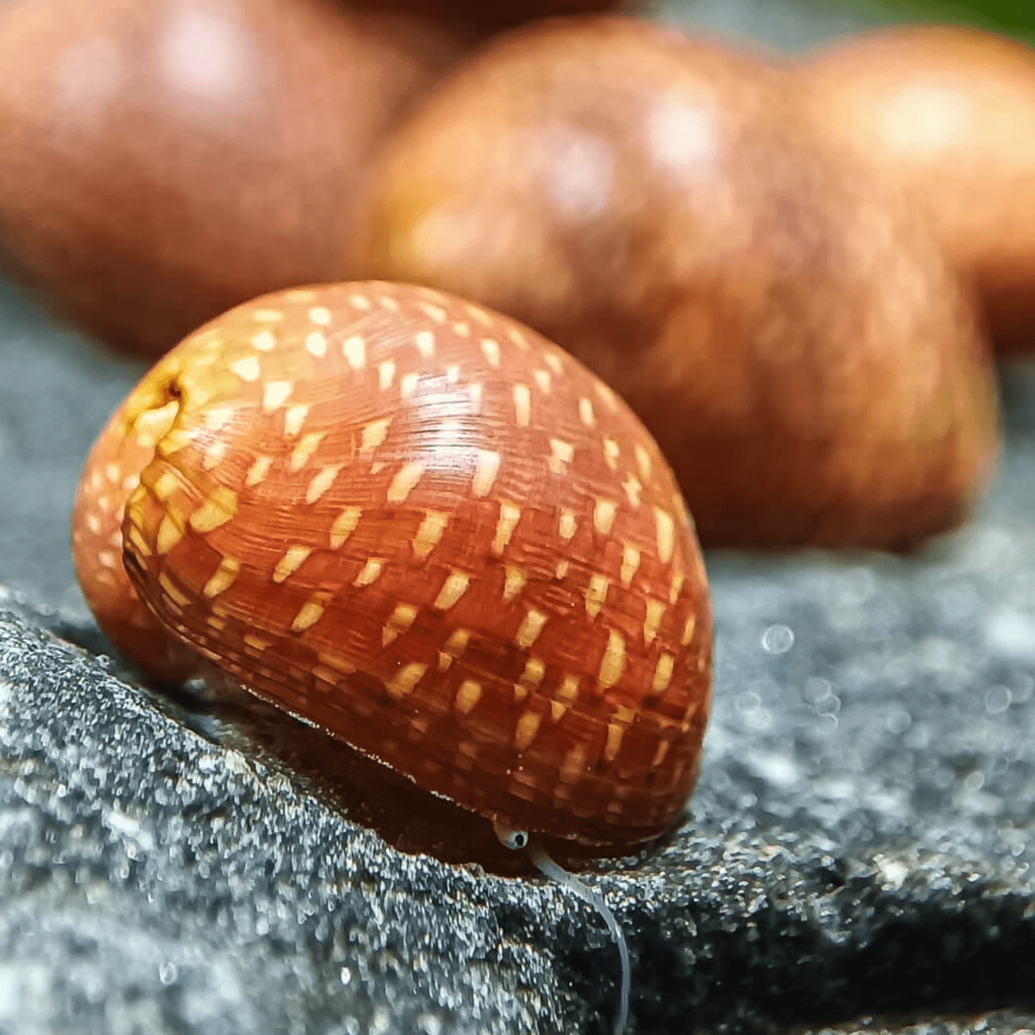 Eftersom majoriteten av våra snäckor är vildodlade kan färg och mönster variera naturligt mellan individer. Små skador eller ojämnheter på skalet är helt normala och påverkar inte snäckans hälsa.