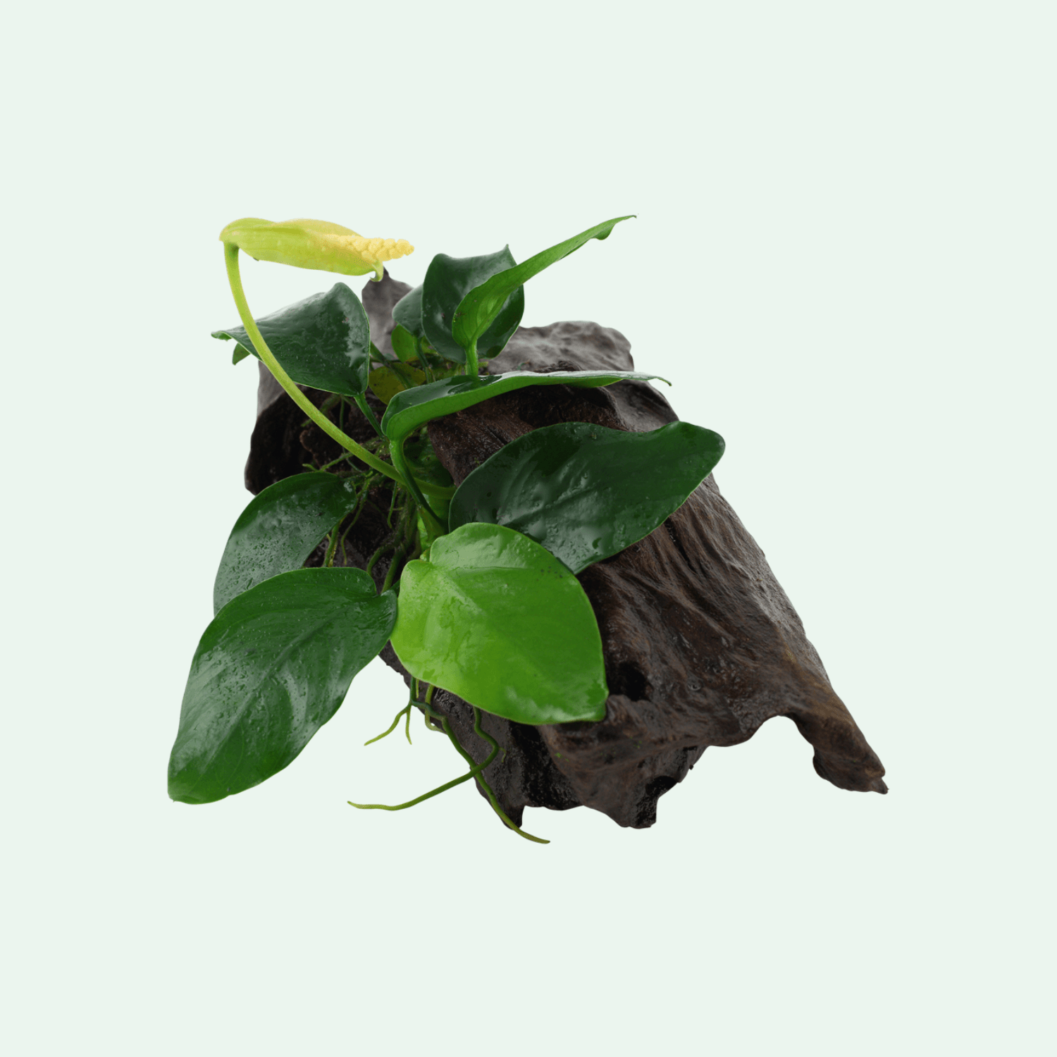 Denna Anubias barteri var. nana levereras färdigmonterad på en naturlig rotdekor. Den är redo att placeras direkt i akvariet – inga förberedelser behövs. Placera roten i akvariets mellanskikt eller förgrund beroende på storlek och layout. Växten kan med tiden fästa sig ännu starkare på roten och sprida sig långsamt. Passar utmärkt i nanoakvarier, biotopkar och naturinspirerade scapes.