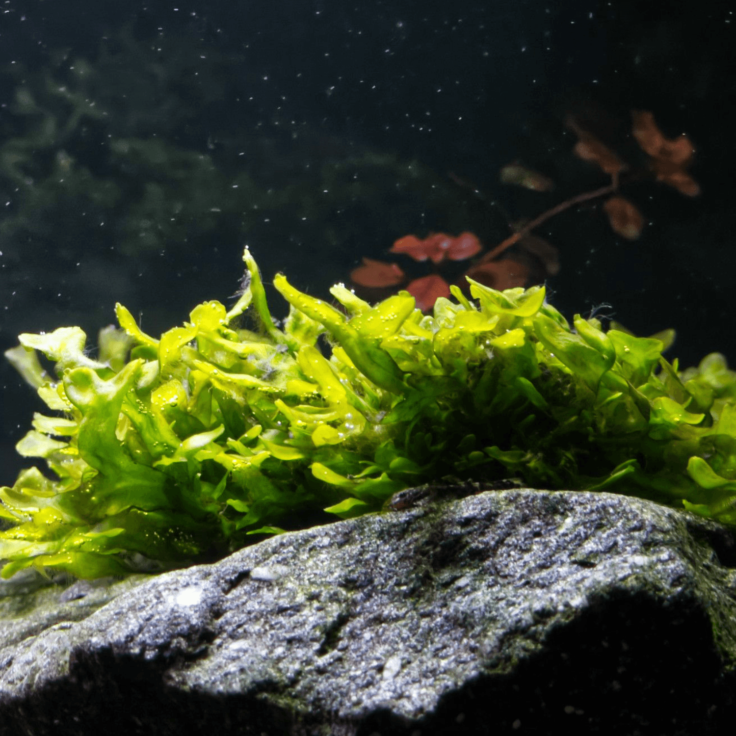 Fördelar: – Redan etablerad i submersed form – Odlade under kontrollerade förhållanden hos oss – Klar att användas direkt i akvariet – Naturlig och dekorativ struktur – Perfekt för räkkar och naturinspirerade layouterUtmaningar: – Växer långsamt under svagt ljus – Känslig för starkt flöde och hantering – Kräver regelbunden gallring för att undvika skuggning – Kan lossna från ytan vid för kraftig cirkulation