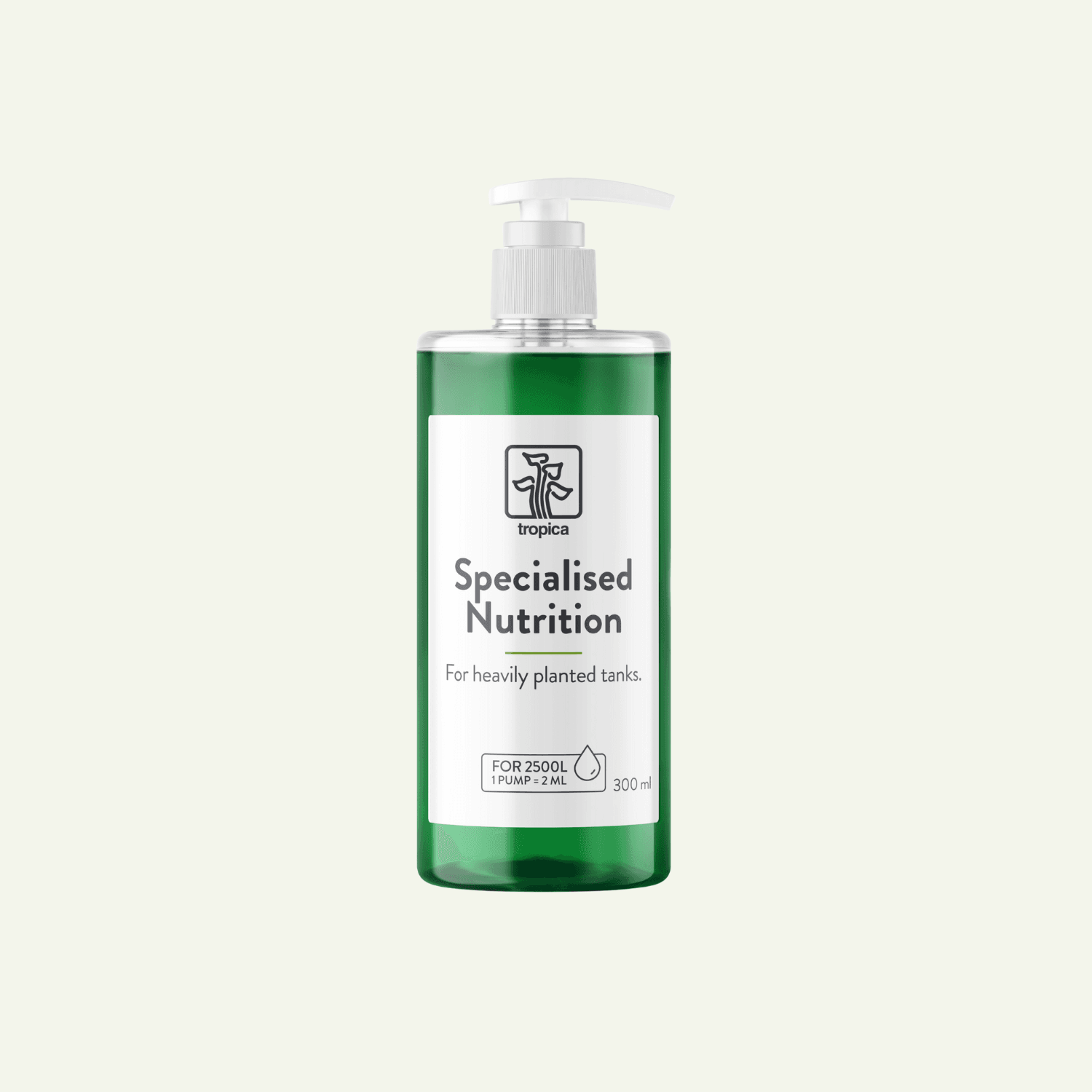 Observera: Tropica Specialised Nutrition är avsedd för akvarier med aktiv tillväxt och CO₂-tillsats. För lågväxtkar utan CO₂ rekommenderas Tropica Premium Nutrition för mer balanserad tillförsel av mikronäring.