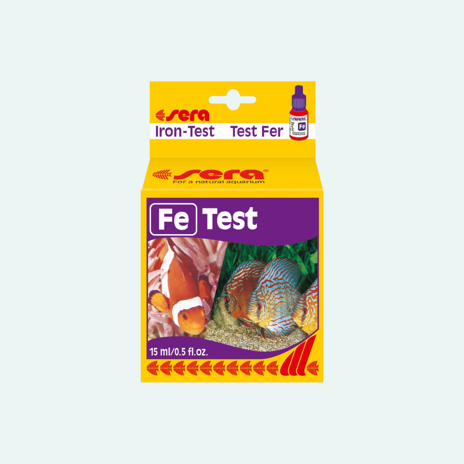 Vattentest Järn (Fe) är ett oumbärligt verktyg för alla växtakvarister som vill hålla sina växter friska, gröna och växande. Järn är ett livsviktigt mikronäringsämne som spelar en central roll i bildningen av klorofyll och fotosyntesen. Med detta test kan du snabbt och noggrant mäta järnhalten i ditt akvarium och säkerställa att dina växter får precis rätt mängd näring – varken för lite eller för mycket.I växtakvarier som gödslas regelbundet kan det vara svårt att avgöra hur mycket järn som faktiskt tas upp av växterna. För låga nivåer leder ofta till gulnande blad och sämre tillväxt, medan för höga nivåer kan skapa obalans. Vattentest Järn Fe 15 ml ger dig kontrollen att justera din gödning utifrån akvariets faktiska behov.