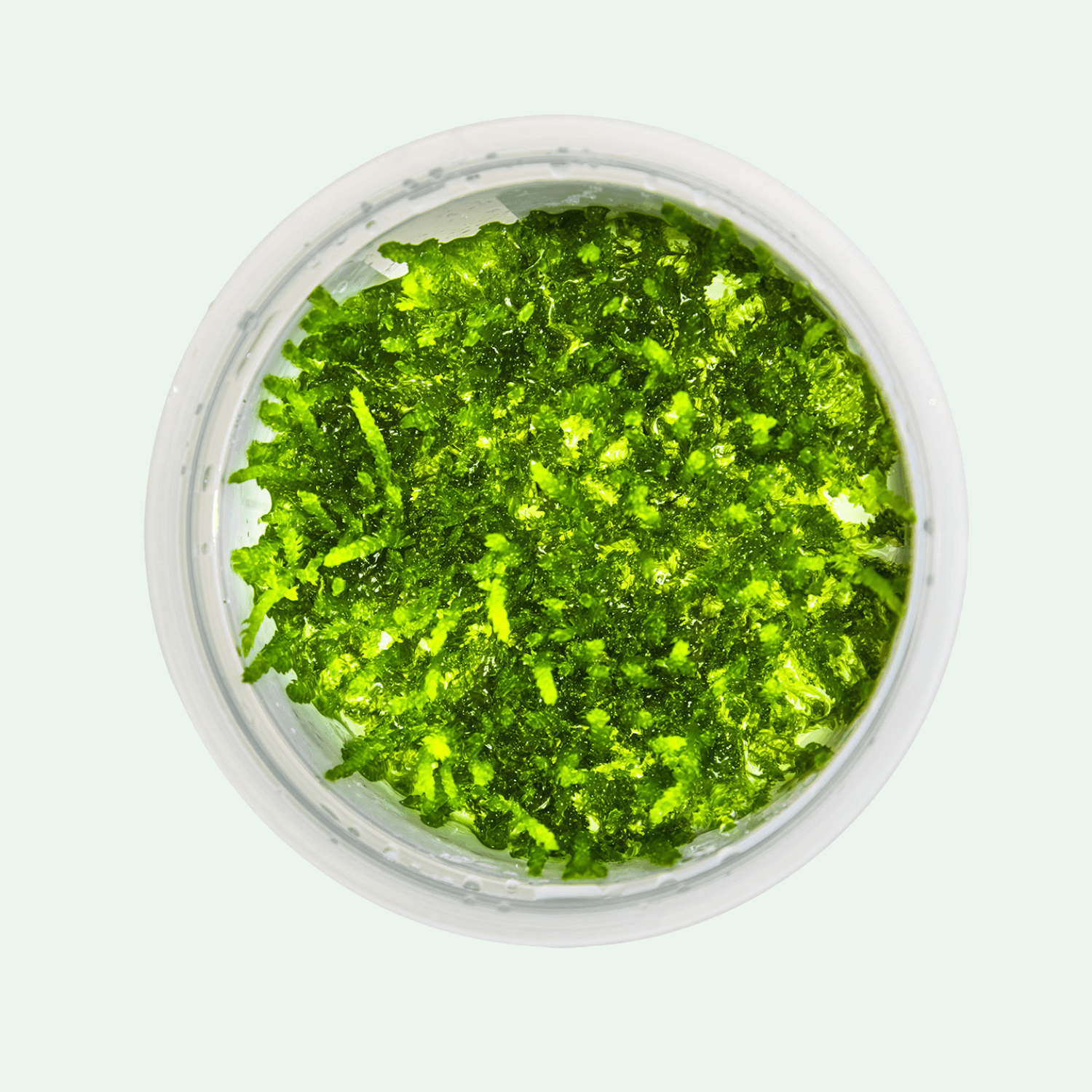 Denna variant av Vesicularia ferriei ’Weeping Moss’ odlas genom invitro-metod – i steril laboratoriemiljö. Det betyder att växten växer i näringsgelé helt fri från alger, snäckor och bekämpningsmedel. Det gör den 100% säker att använda även i räkkar och känsliga biotoper. Före plantering ska gelén sköljas bort försiktigt i ljummet vatten, och mossan kan därefter delas i flera mindre portioner.