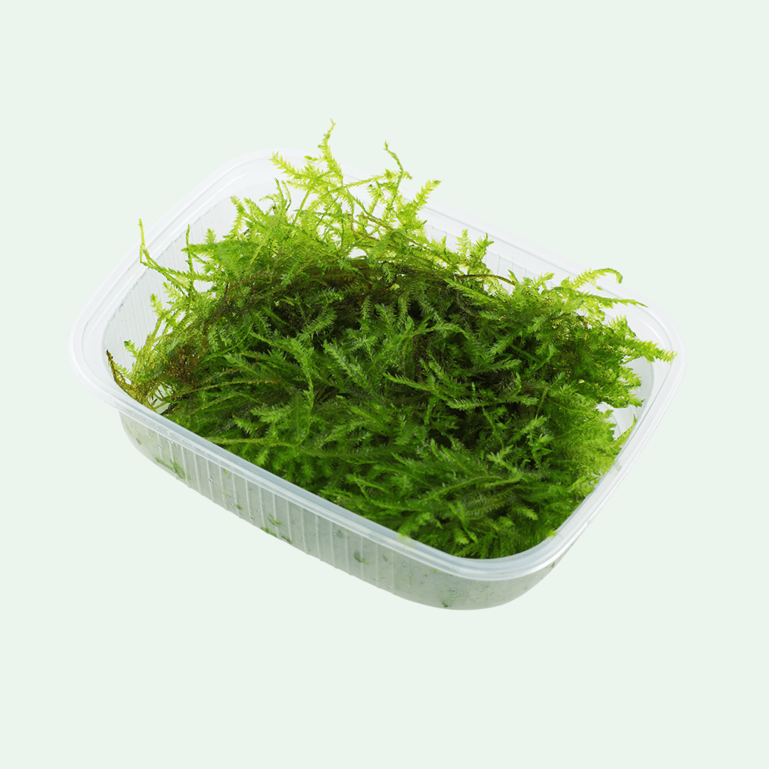 Vesicularia montagnei ’Christmas Moss’ är en mycket populär akvariemossa som utmärker sig genom sitt karakteristiska växtsätt – skotten växer i täta, triangelformade grenar som liknar små julgranar. Den bildar täta mattor eller buskiga formationer beroende på hur den planteras och trimmas. ’Christmas Moss’ används ofta i aquascaping för att skapa ett naturligt och frodigt utseende på stenar, rötter eller trädstrukturer, och ger en fantastisk känsla av djup och liv i layouten.