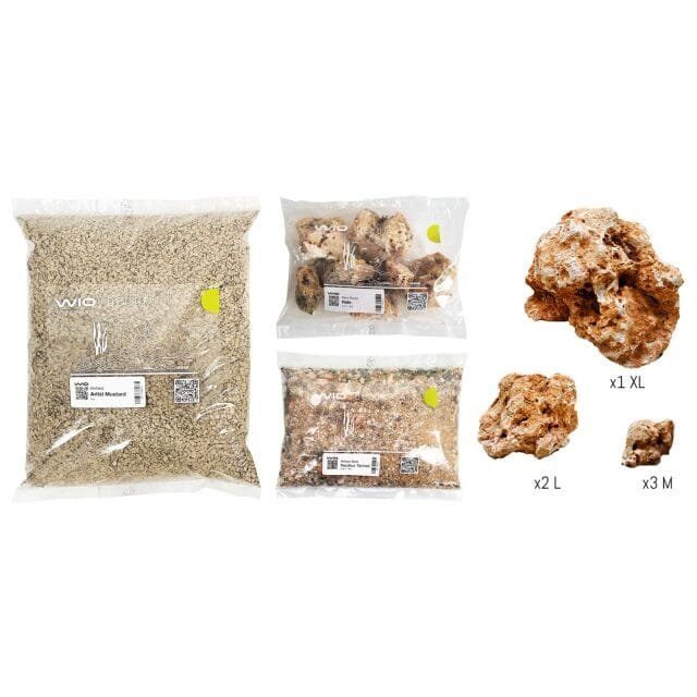 WIO Biotope Decor-Kit Nautilus Tan är ett komplett all-in-one aquascaping-kit inspirerat av de legendariska Great Rift Lakes i Afrika – hem för några av världens mest specialiserade och färgstarka sötvattensfiskar. Detta kit är utformat för att återskapa sjöstränder och grundare zoner där snäckskal, sand och porös sten dominerar landskapet. Miljön är särskilt anpassad för fiskarter som använder snäckor som en aktiv del av sitt beteende – för skydd, lek, födosök eller revirbildning. Resultatet är ett levande och dynamiskt biotopakvarium där både estetik och naturligt beteende står i centrum.