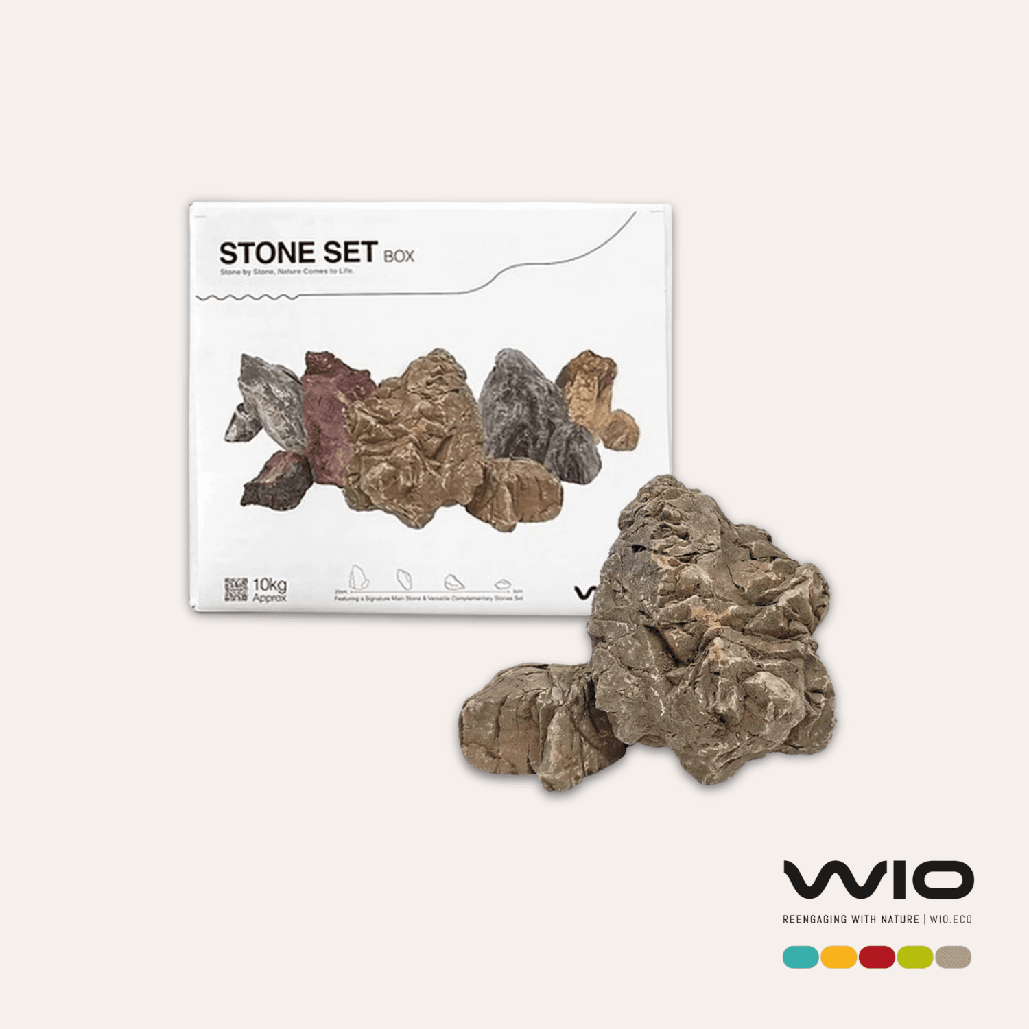10 kg och är perfekt anpassad för mindre till medelstora akvarier. Setet innehåller en balanserad mix av huvudstenar och nanostenar för naturliga övergångar och detaljer.